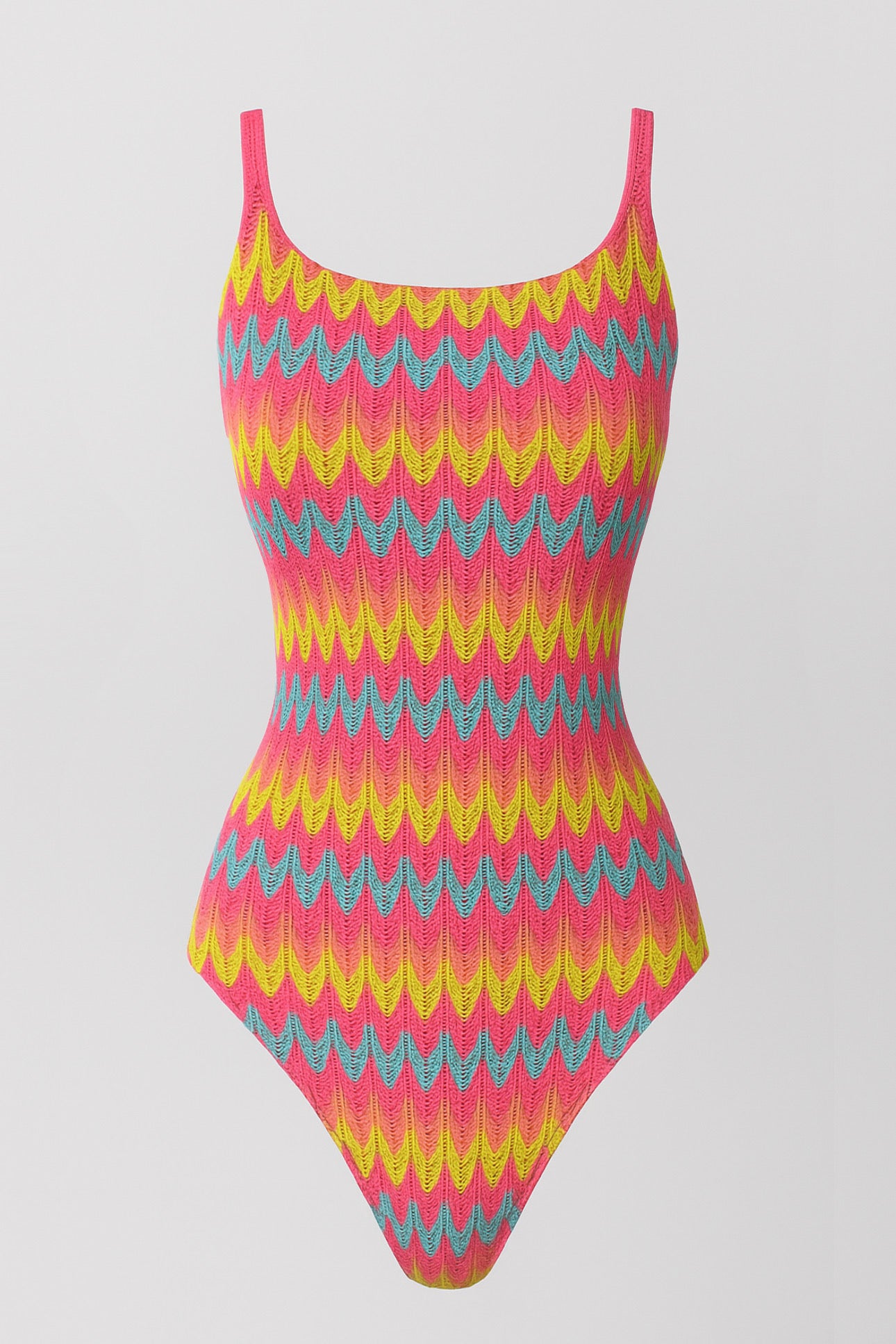 A refined silhouette for sun-soaked days. This one-piece swimsuit features a square scoop neckline and a high back line that mirrors the front for a clean, structured look. Designed with medium bottom coverage and adjustable spaghetti straps, it offers both elegance and ease.